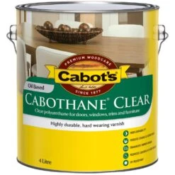 Cabot’s Cabothane Clear Oil Based Varnish is a clear polyurethane for doors, windows, trim and furniture. It is a highly durable, hard wearing varnish. This product provides a durable, long-lasting finish that is resistant to scratches, scuffs, and stains. Cabot’s Cabothane Clear Oil Based Satin 4L is an ideal choice for those looking to protect and enhance the natural beauty of their woodwork while maintaining a low sheen finish.
