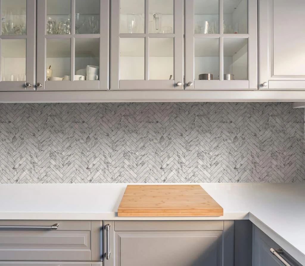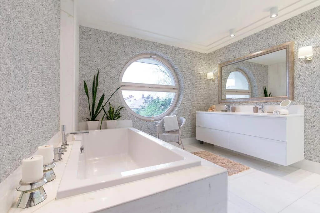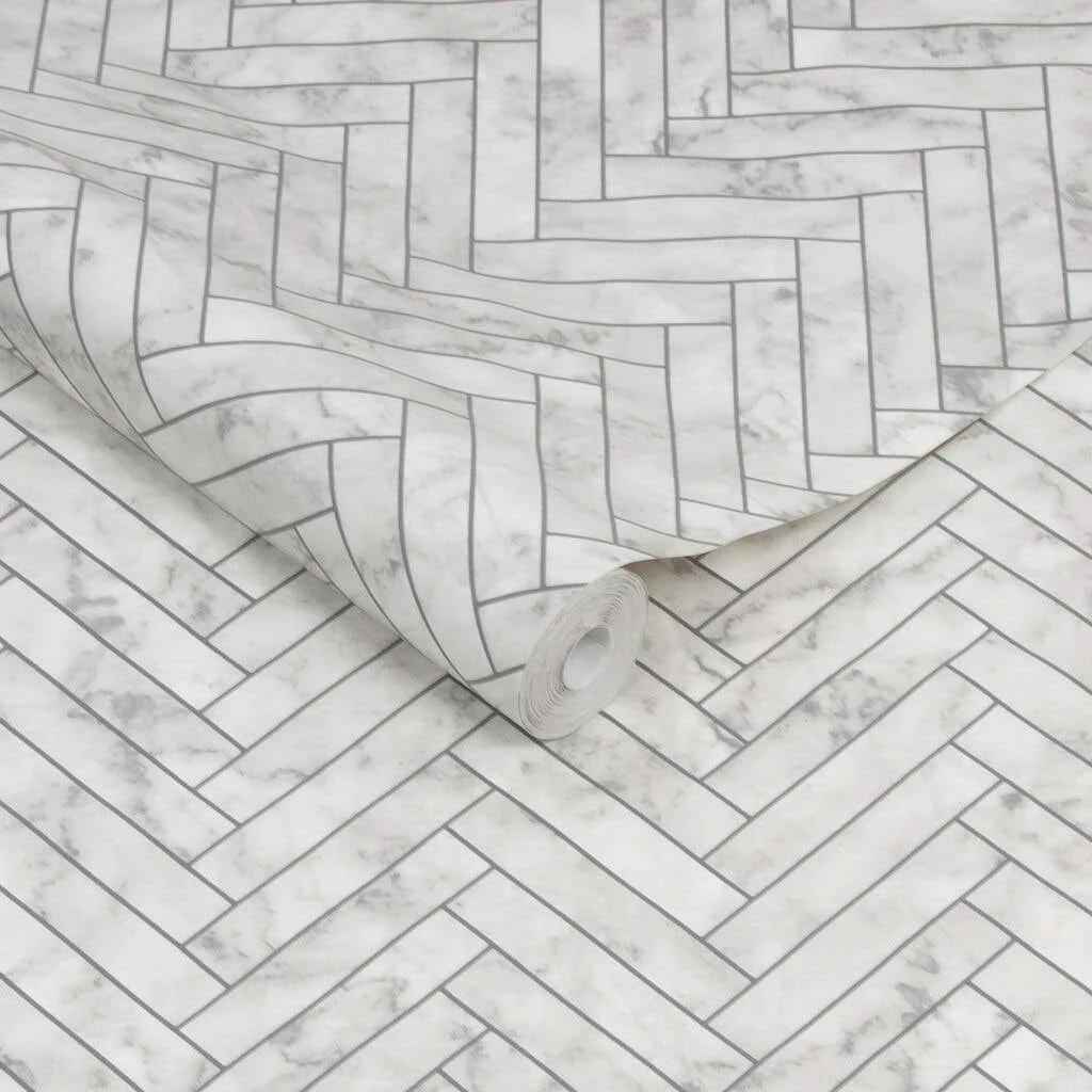 The Marble Chevron Tile effect wallpaper gives your home the expensive time consuming tiled look, without the price point or effort required. The chevron tile effect wallpaper in white marble will add texture and copious amounts of sophistication to your home. With revolutionary anti bacterial properties, it’s great for reducing bacteria around the home as well as being durable enough to handle everyday kitchen and bathroom activities. This wallpaper is easy to apply and remove from your walls.