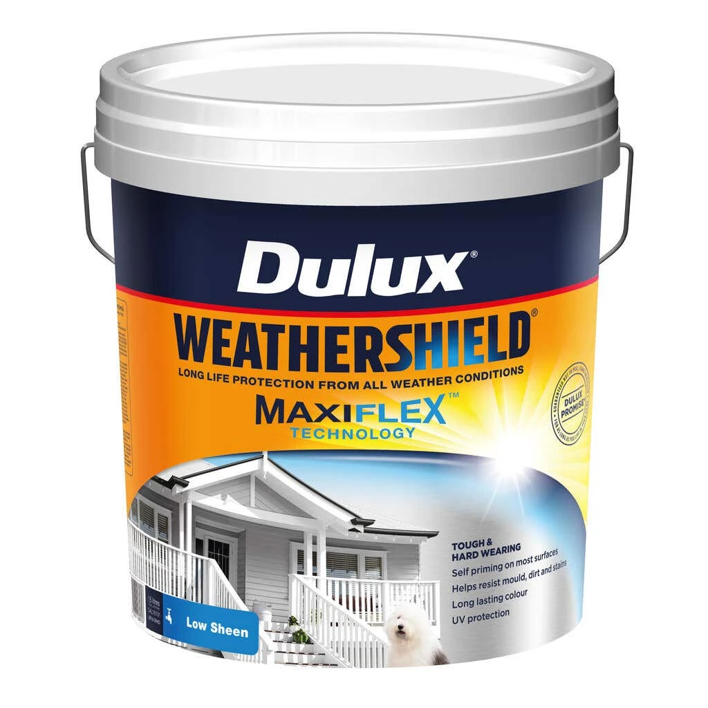 Long-life protection from all weather conditions. Weathershield has been specially designed to provide a tough, hard-wearing finish that provides protection from all weather conditions. Formulated with MaxiFlex Technology to expand and contract with the surface, guarantees Weathershield won’t peel, flake or blister for as long as you live in your home. Dulux Weathershield has been specially designed to provide a tough, hard-wearing finish. As weather conditions change, surfaces expand and contract. Dulux Weathershield is formulated with MaxiFlex Technology to flex with the surface providing long-lasting protection for as long as you live in your home.