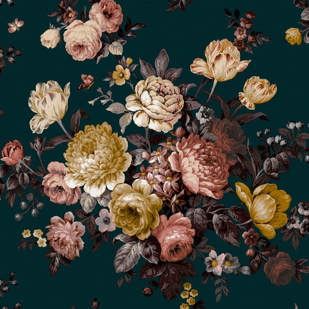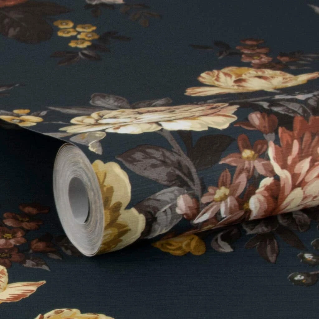 Make your own statement with this bold floral design, featuring a navy blue backing and colourful flowers. A decadent blend of modern and classic print features, this wallpaper is sure to transform any living space. This design is easy to apply and remove from your walls.