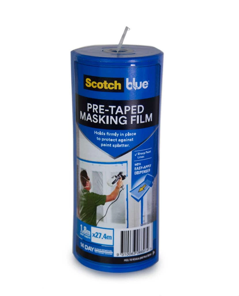 ScotchBlue Pre-Taped Masking Film Canister 1.8 x 27.4m is a convenient and efficient masking solution for your painting projects. This pre-taped masking film canister includes a roll of high-density masking film and pre-attached tape, providing an all-in-one solution for protecting surfaces from paint splatters and drips. With a width of 1.8m and a length of 27.4m, this masking film canister is perfect for both and professional use.