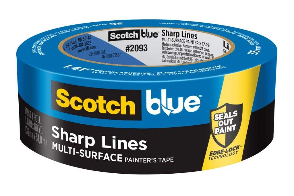 ScotchBlue™ Sharp Lines Painter’s Tape features Edge-Lock™ Technology that seals out paint to deliver sharp paint lines. Whether you’re protecting your wood trim, painted walls, tile floor, or glass windows, this versatile multi-surface tape can stay on surfaces for up to 21 days and then removes easily without leaving any sticky residue behind. Help keep your wainscoting paint free or shield your built-in shelves with the powerful protection of ScotchBlue™ Sharp Lines Painter’s Tape.