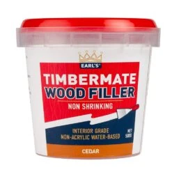 Timbermate Woodfiller is an interior grade wood putty, grain filler, edge filler and crack filler. Timbermate does not shrink, sink, crack or fall out and has an indefinite shelf life. The secret ingredient of Timbermate is tap water and has no Acrylic, Latex or Solvents. It is non-flammable, freeze-thaw stable and can be used to the last gram.