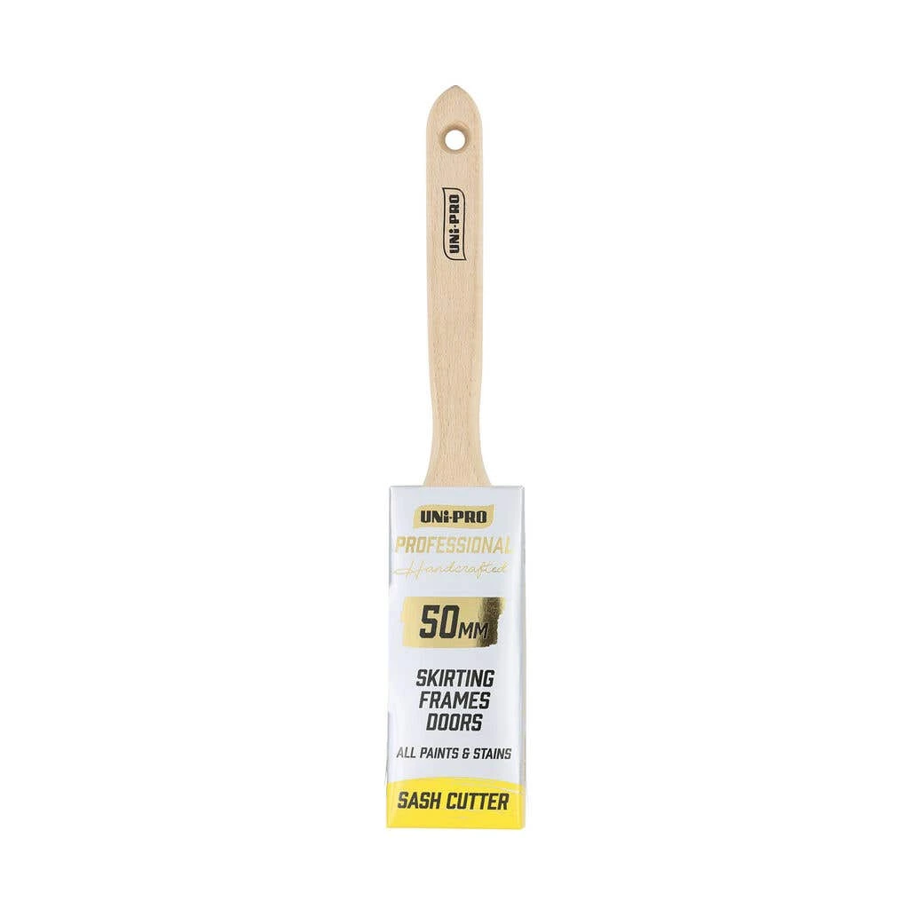 The Uni-Pro Professional Sash Cutter 50mm is a trade-quality tool designed specifically for achieving smooth and precise cuts on sash surfaces. This 100% hand-crafted range features an exclusive SC2 premium blend, ultra-tapered filament. The brushes have been designed for the trade and will deliver exceptional results. A perfectly balanced beech hardwood handle offers maximum comfort and control, and the double-pinned stainless steel ferrule ensures maximum durability.